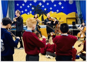 We have very much enjoyed continuing our residency at the RWCMD this year – working with the talented string players there and visiting many schools in the Cardiff area. This Autumn, we performed for around 1,200 primary school children!
